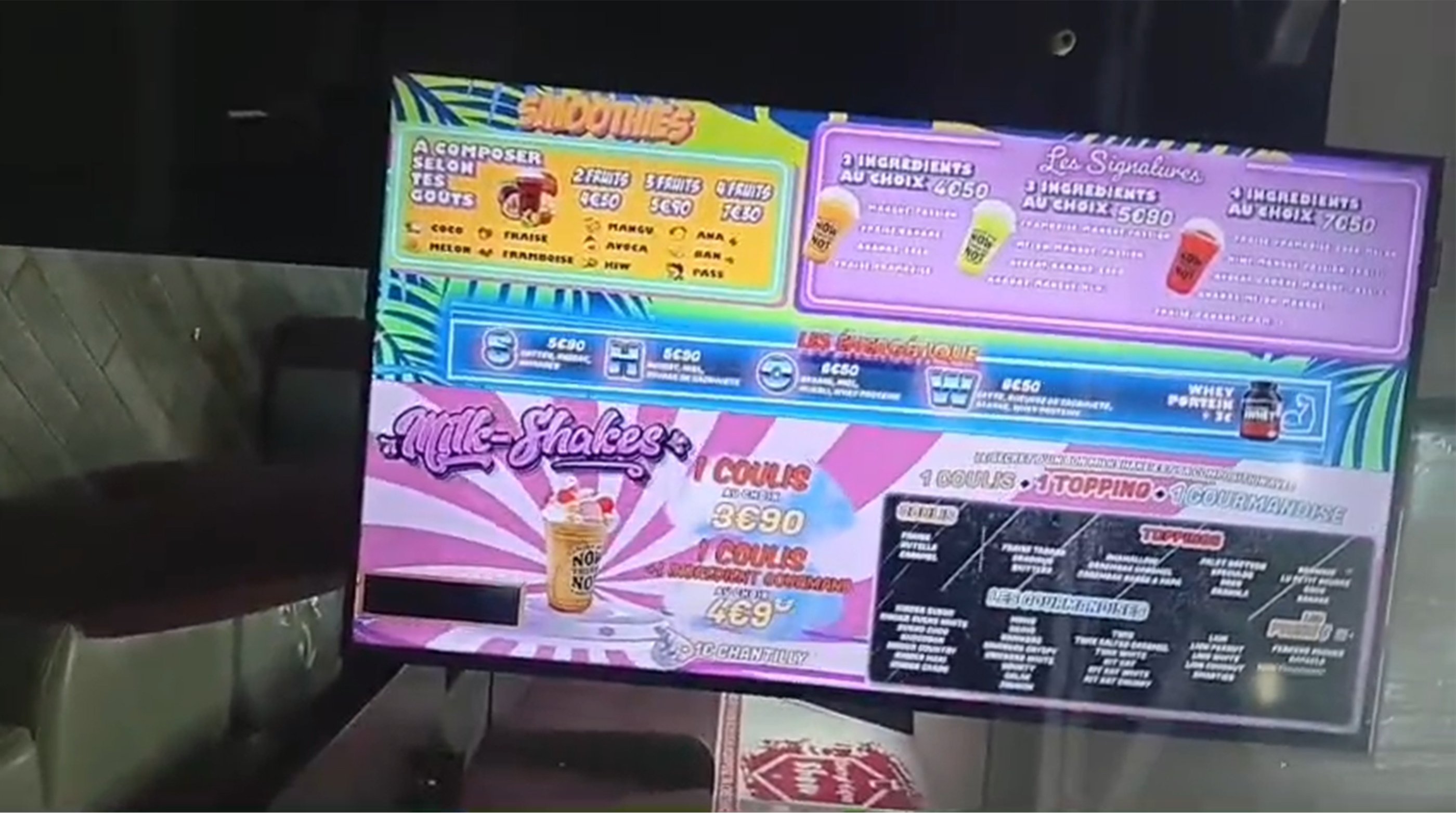 Nous créons vos visuels au bon format écran (résolution, lecture à distance, contraste) et pouvons préparer des modèles réutilisables pour que vous puissiez mettre à jour facilement vos prix et vos produits.
