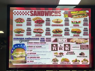 Le menuboard dynamique sur écran TV vous permet de moderniser votre point de vente et d’attirer l’attention avec un affichage animé et évolutif. Idéal pour afficher des menus, formules, promotions, nouveautés ou visuels produits, avec une mise à jour rapide selon l’heure ou la saison.